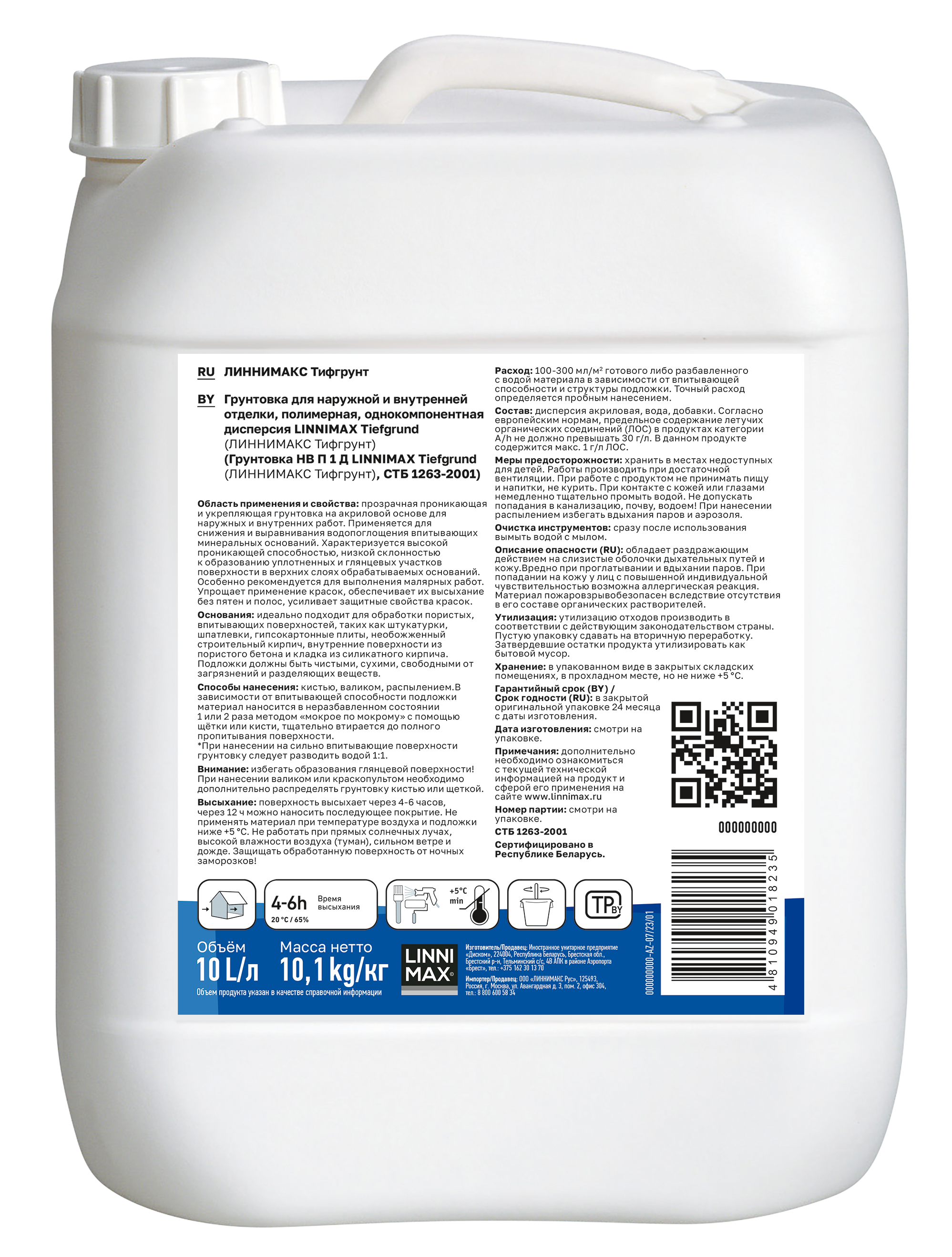 Linnimax Tiefgrund — профессиональная грунтовка глубокого проникновения на водной основе для наружных и внутренних работ. Основана на ультратонкой акриловой дисперсии (гидрозоль), с частицами 10⁻⁷ – 10⁻⁹ м, благодаря чему значительно глубже проникает в основание, чем обычные грунтовки.