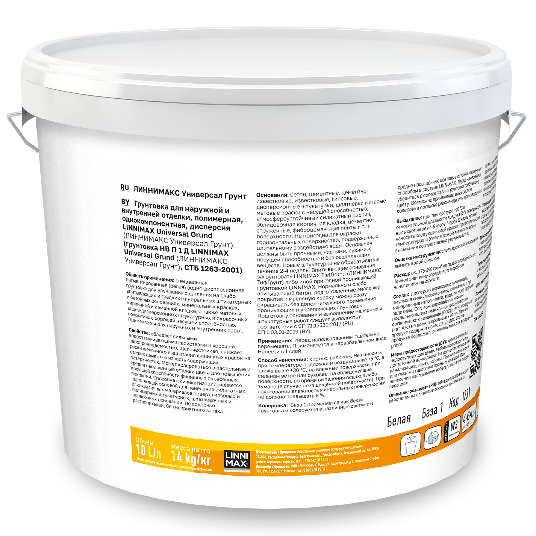 Linnimax Universal Grund — высокопаропроницаемая пигментированная грунтовка для внутренних и наружных работ.