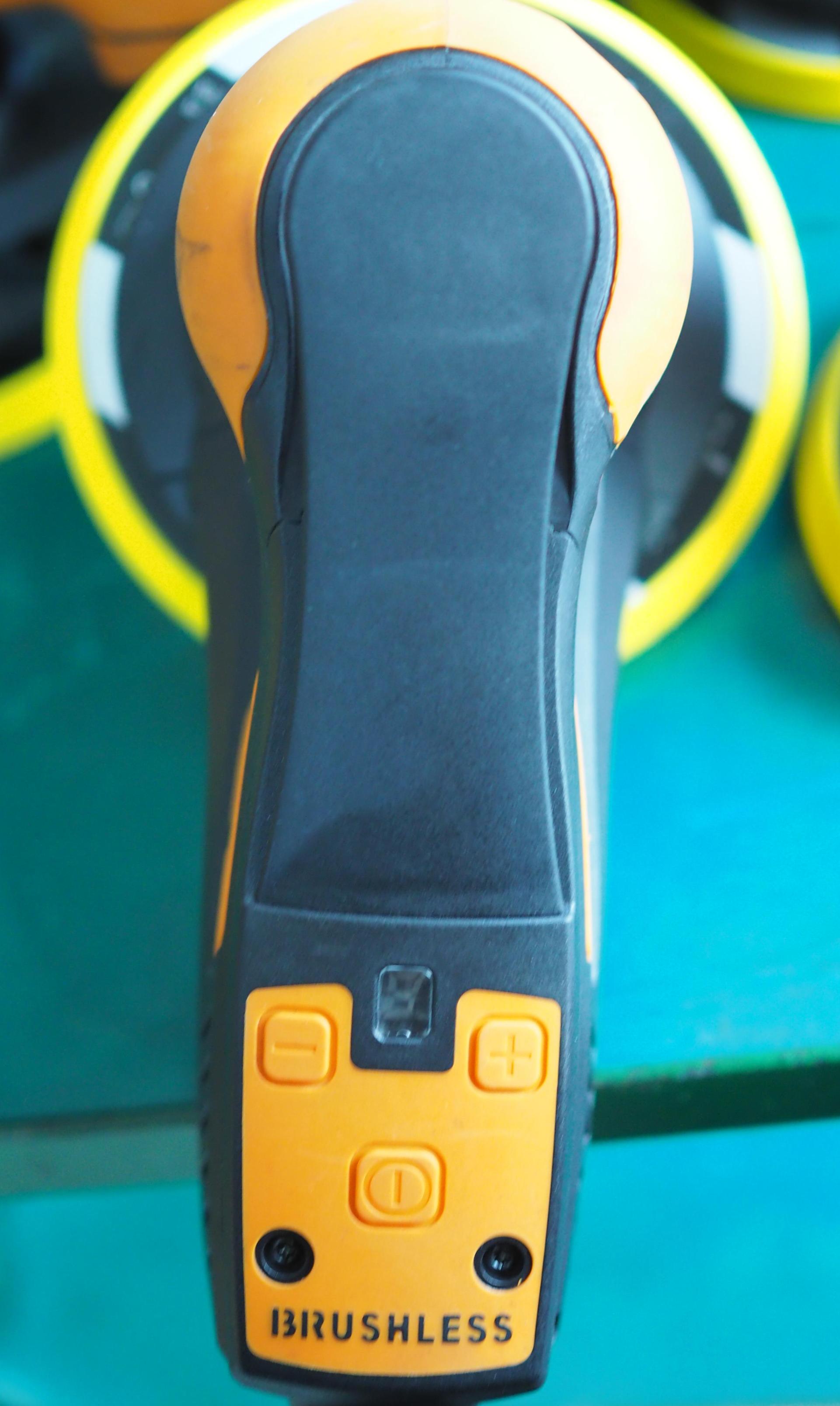 Кроме того, шлифовальная машинка имеет эргономичную рукоятку, позволяющую работать в любом положении, а регулировка скорости вращения осуществляется с помощью двух кнопок, расположенных на корпусе аппарата.