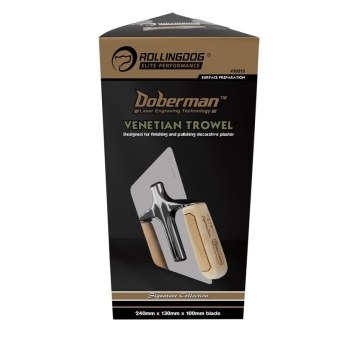 Венецианская кельма Rollingdog DOBERMAN (арт. 50513) разработана для чистового разглаживания и полирования Venetian/Marmorino и других тонкослойных декоративных составов. Зеркальная полировка полотна из нержавеющей стали 420 уменьшает трение и помогает получать ровный блеск без следов от кромки. Фаска (beveled edges) обеспечивает «мягкий» вход инструмента в материал, а скруглённые углы снижают риск царапин в примыканиях. Основа — алюминиевая рама с покрытием: инструмент остаётся лёгким и жёстким, сохраняя геометрию при давлении. Буковая рукоятка даёт уверенный хват и контроль на длительных проходах. Формат 24×13×10 см позволяет работать производительно на больших плоскостях и аккуратно у краёв.