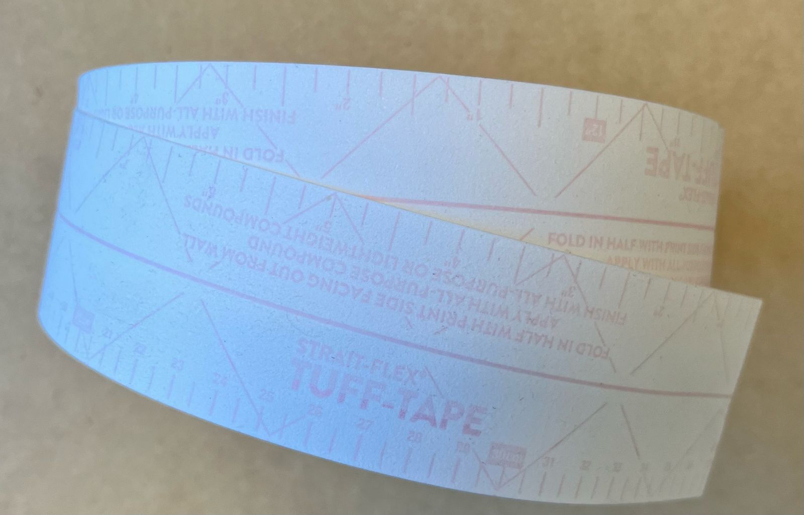 Композитная лента Strait-Flex Tuff-Tape. Используется для соединения плит гипсокартона на плоских поверхностях и создания внутренних углов вместо сетки, флизелина, бумажных лент и бумажных лент со вставками алюминия. Новичкам для заделки стыков и создания внутренних углов легче применять ленту Strait-Flex Tuff-Tape: она не будет размокать, провисать, вздуваться и трескаться, но при желании легко разрежется ножницами или строительным ножом.