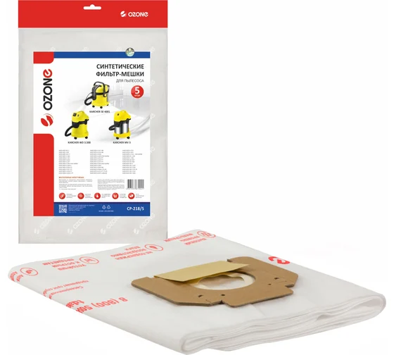 Мешки Ozone CP-218/5 идеально подходят к широкому модельному ряду пылесосов Керхер: