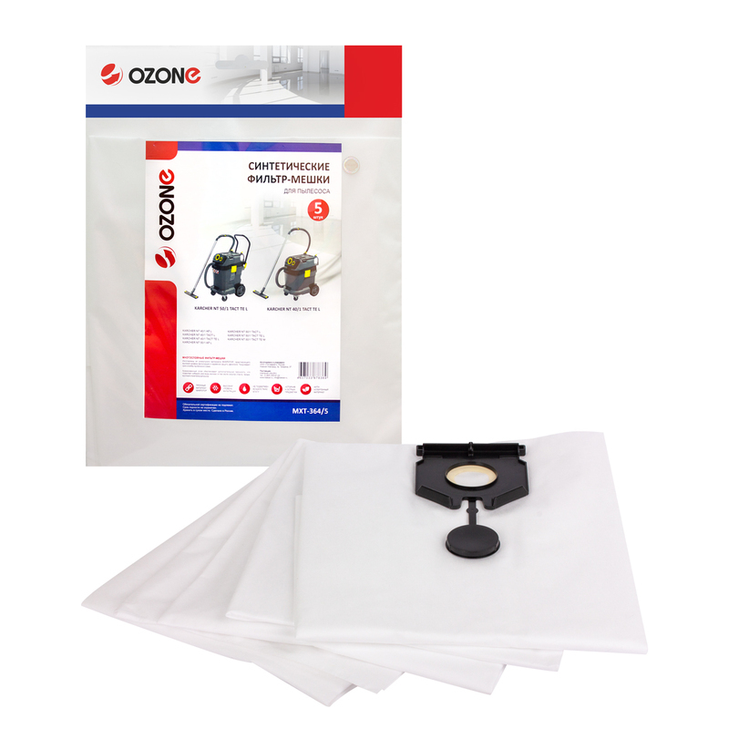 Промышленные мешки-пылесборники Ozone MXT-364/5, армированные тканевые, для тяжелых пылесосов KARCHER NT 40/1 и NT 50/1 (5 шт.)