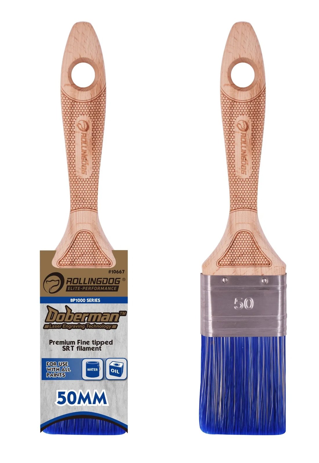 Rollingdog 10667 Doberman — кисть плоская 50 мм, SRT синтетика, нержавеющая обойма, рукоятка бук