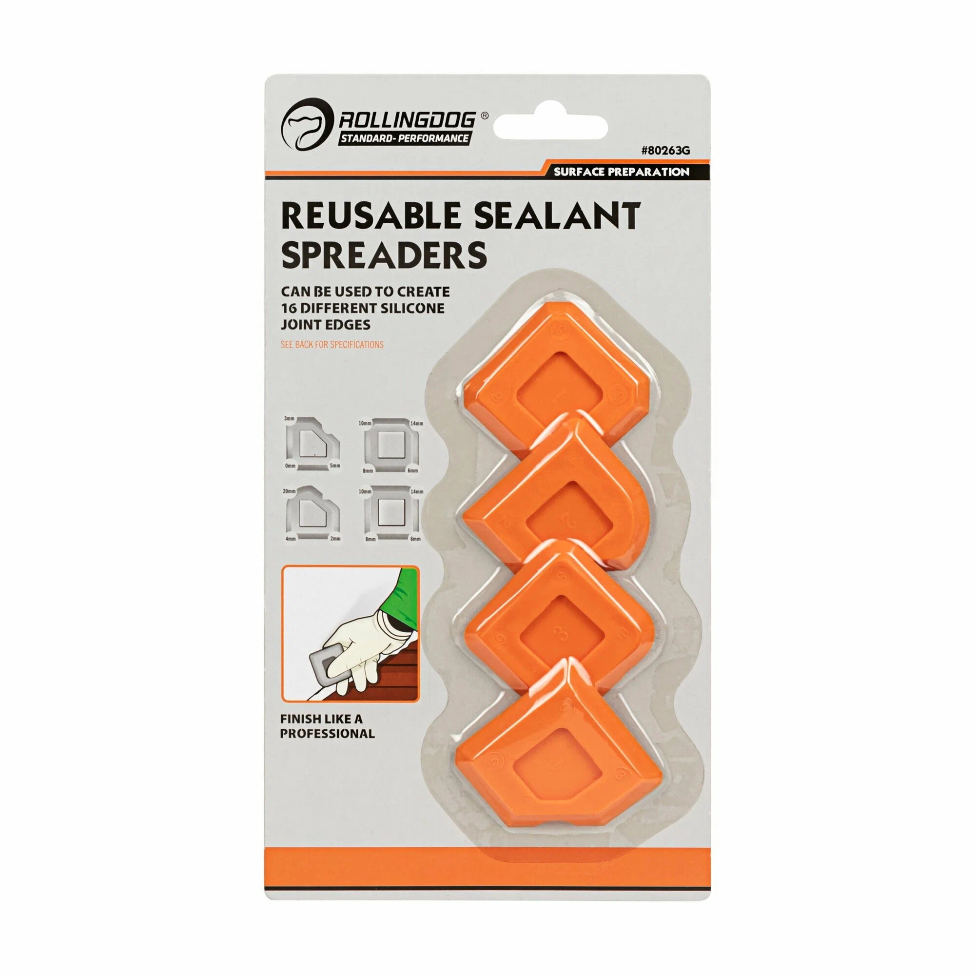Набор Rollingdog 80263G включает четыре гибких шпателя, предназначенных для работы с силиконовыми и герметичными составами. Благодаря конструкции с несколькими профилями с обеих сторон каждый шпатель позволяет формировать до 16 различных форм швов и углов.