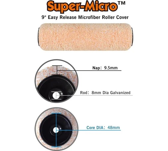 Шубка из Super-Micro микрофибры обеспечивает отличную способность поглощать краску и равномерно её отдавать, что даёт гладкий и почти “аэрозольный” эффект нанесения. Ворс 9,5 мм оптимален для поверхности, на которых нужно избежать выраженной текстуры, но немного сглаженной шероховатости допускается.