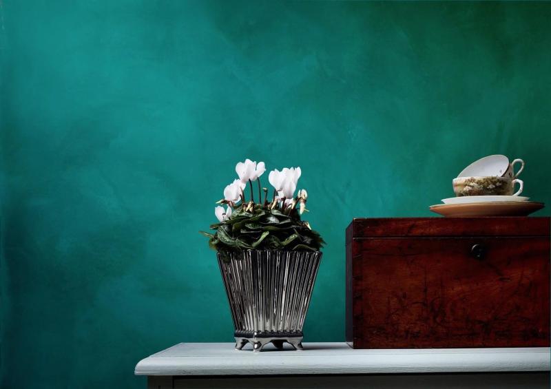 Зелёный цвет в интерьере раскрывается по-новому, когда используется декоративное покрытие с бархатистой матовой текстурой. Благодаря минеральной основе на гашёной извести и тонко подобранным наполнителям, поверхность приобретает эффект мягкого свечения, насыщенного и живого цвета, будто пронизанного светом изнутри.